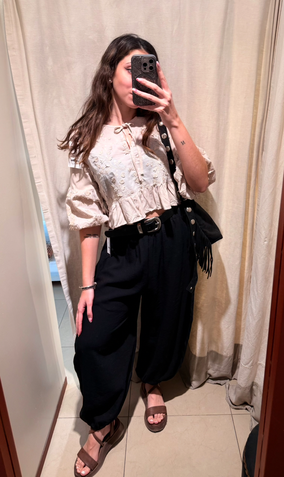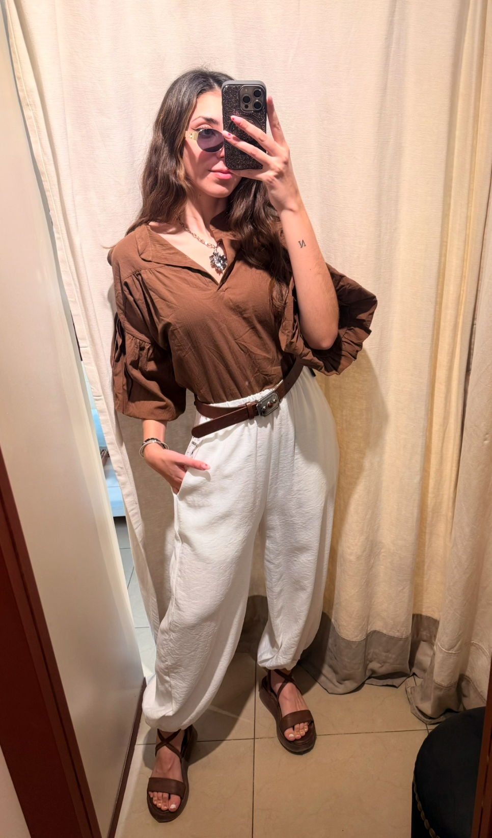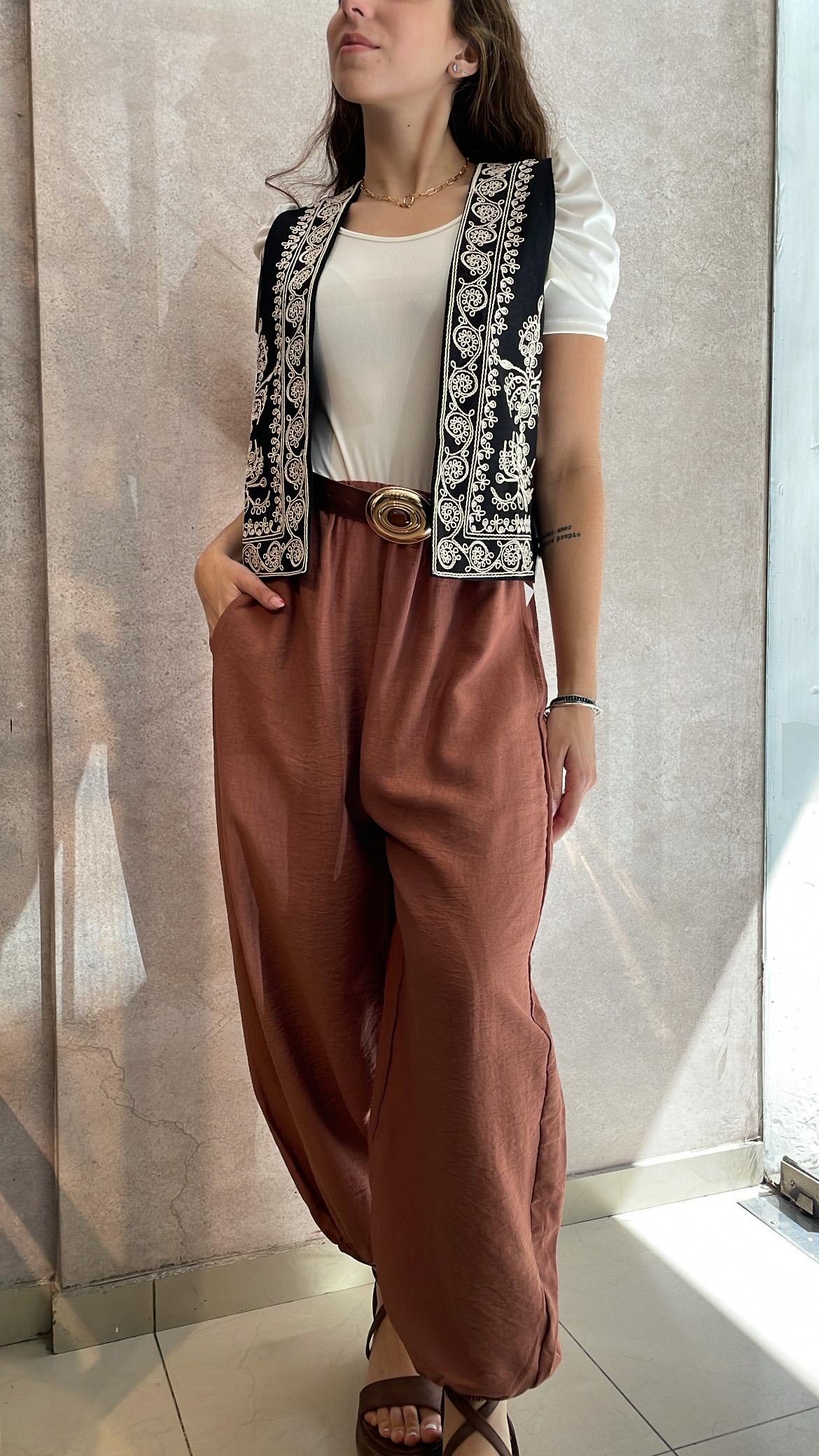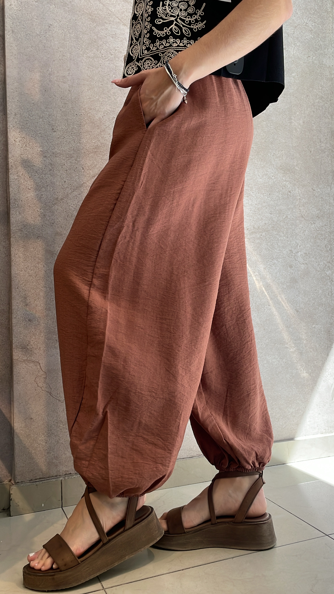 Babucha de lino con elástico. Talle único adaptable a talles S, M y L.