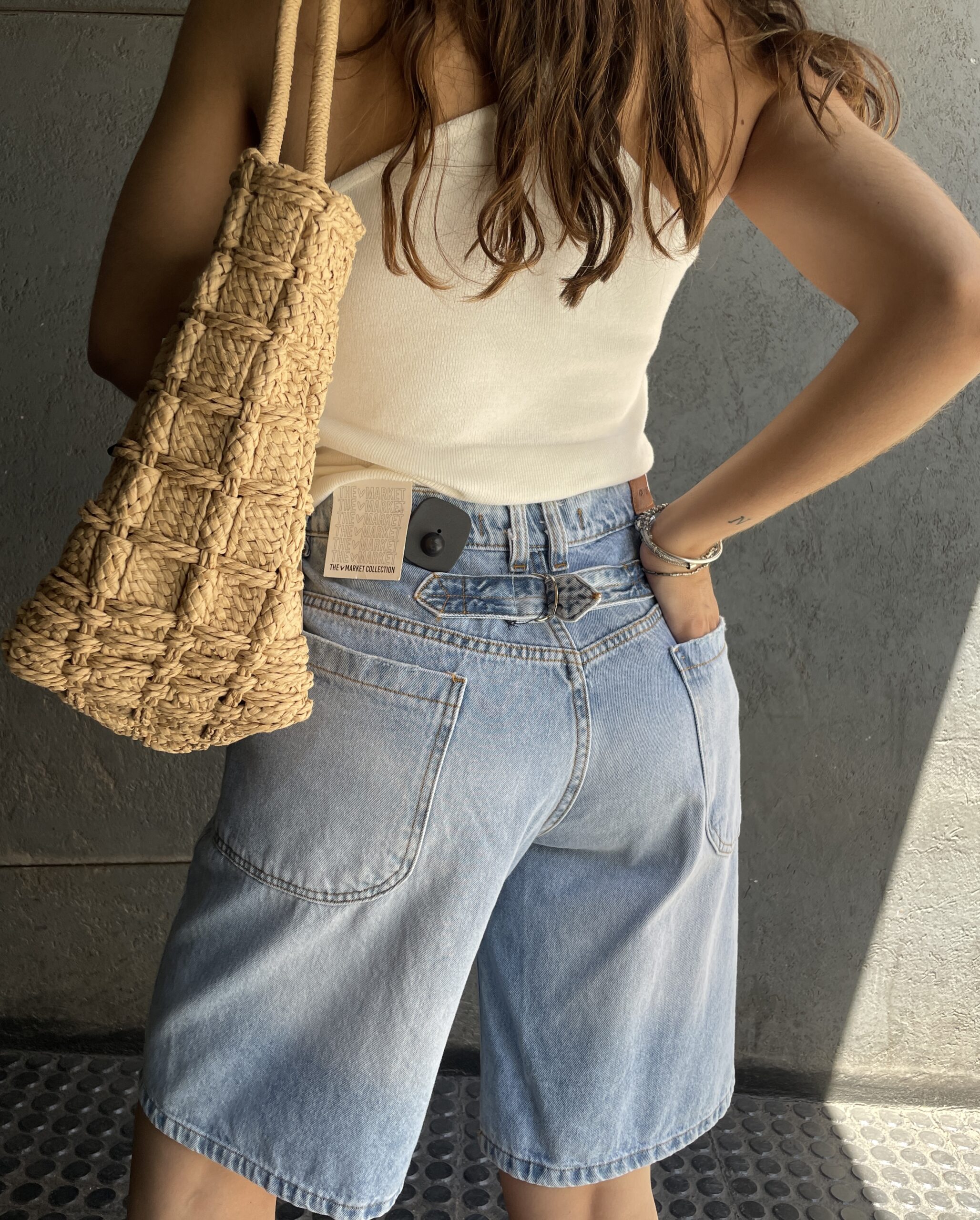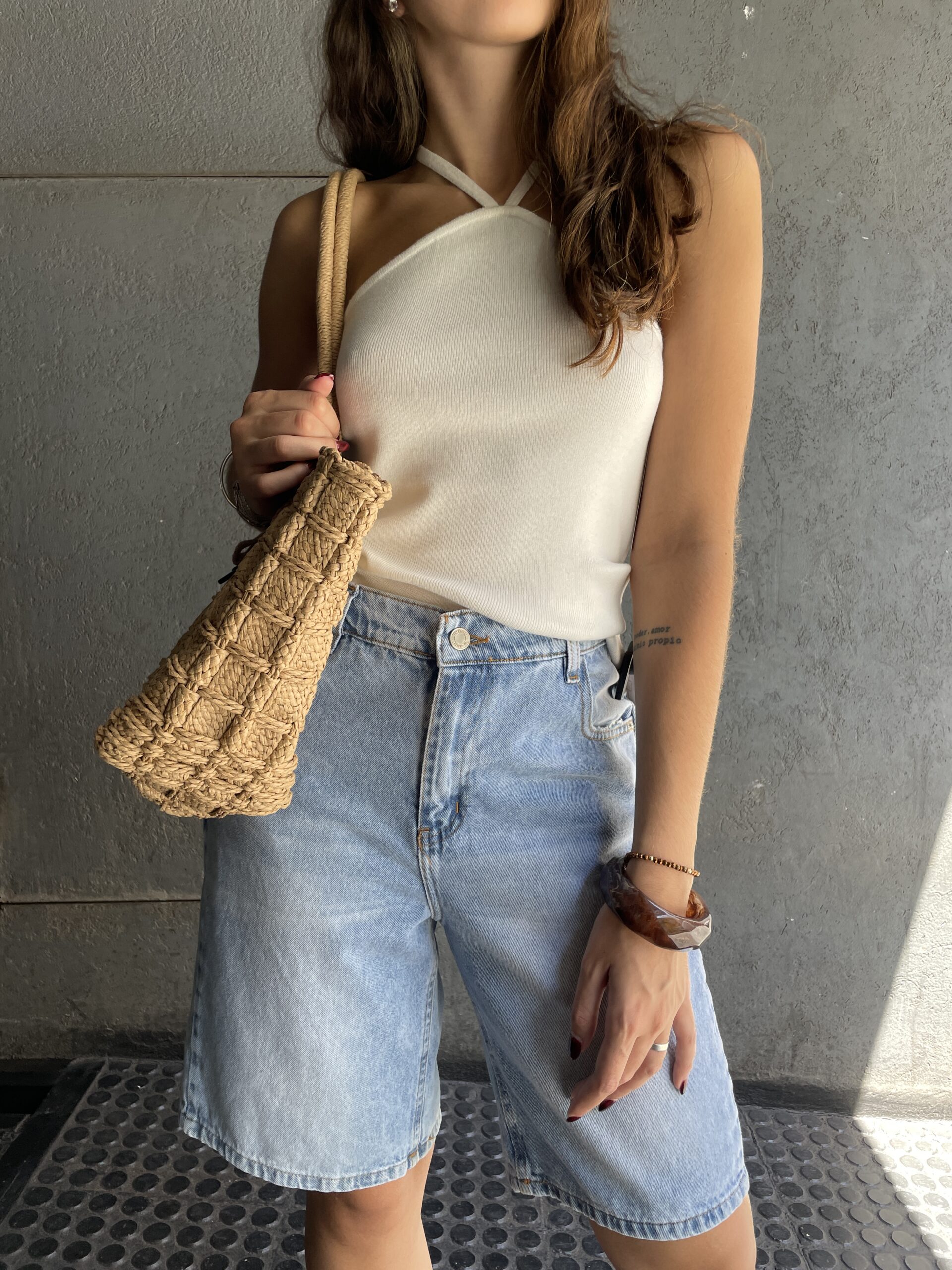 Bermuda de denim rígido tiro medio.