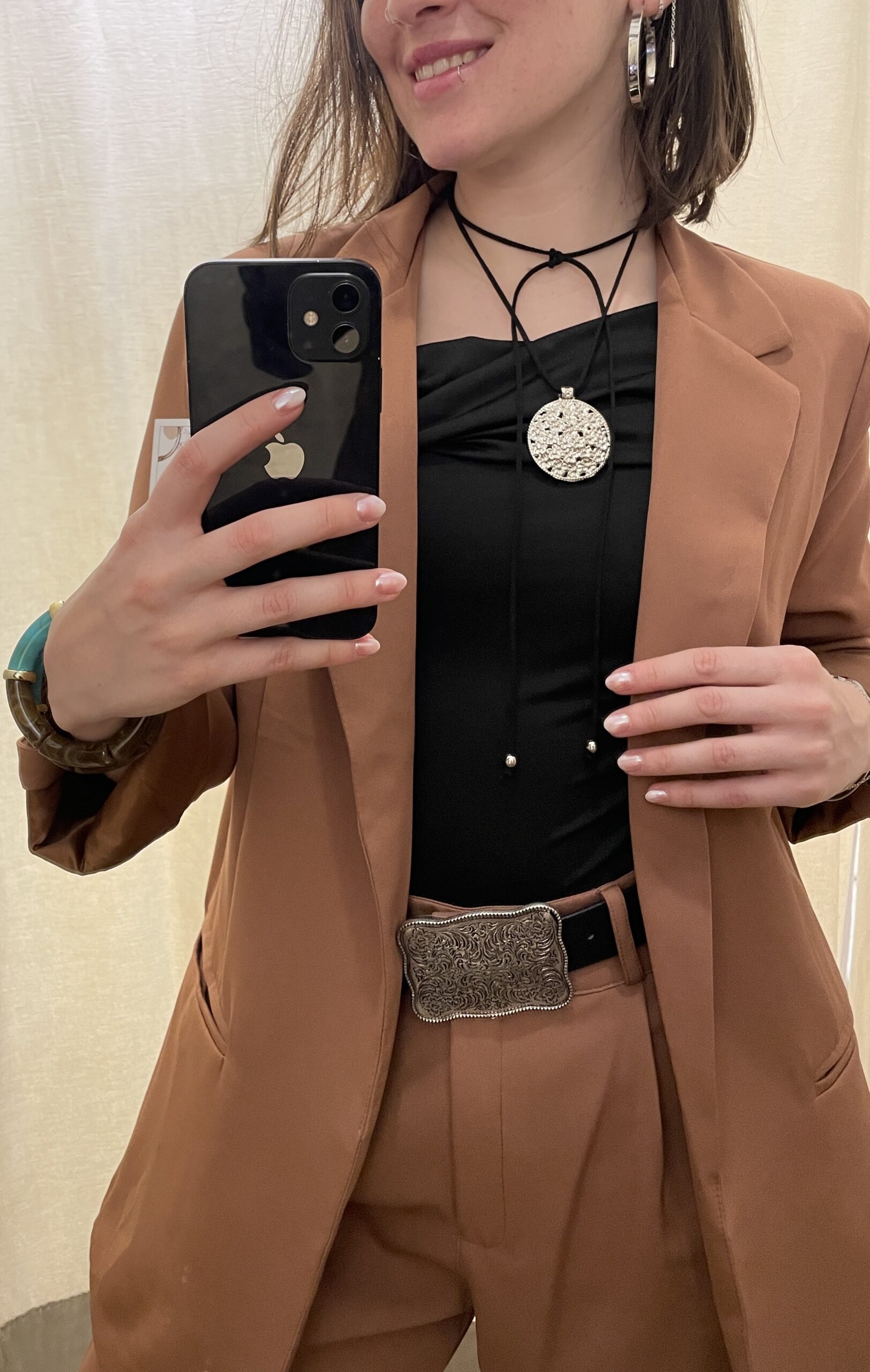 Blazer forrado con pinzas para entallar, Incluye botón para arremangado y bolsillos.