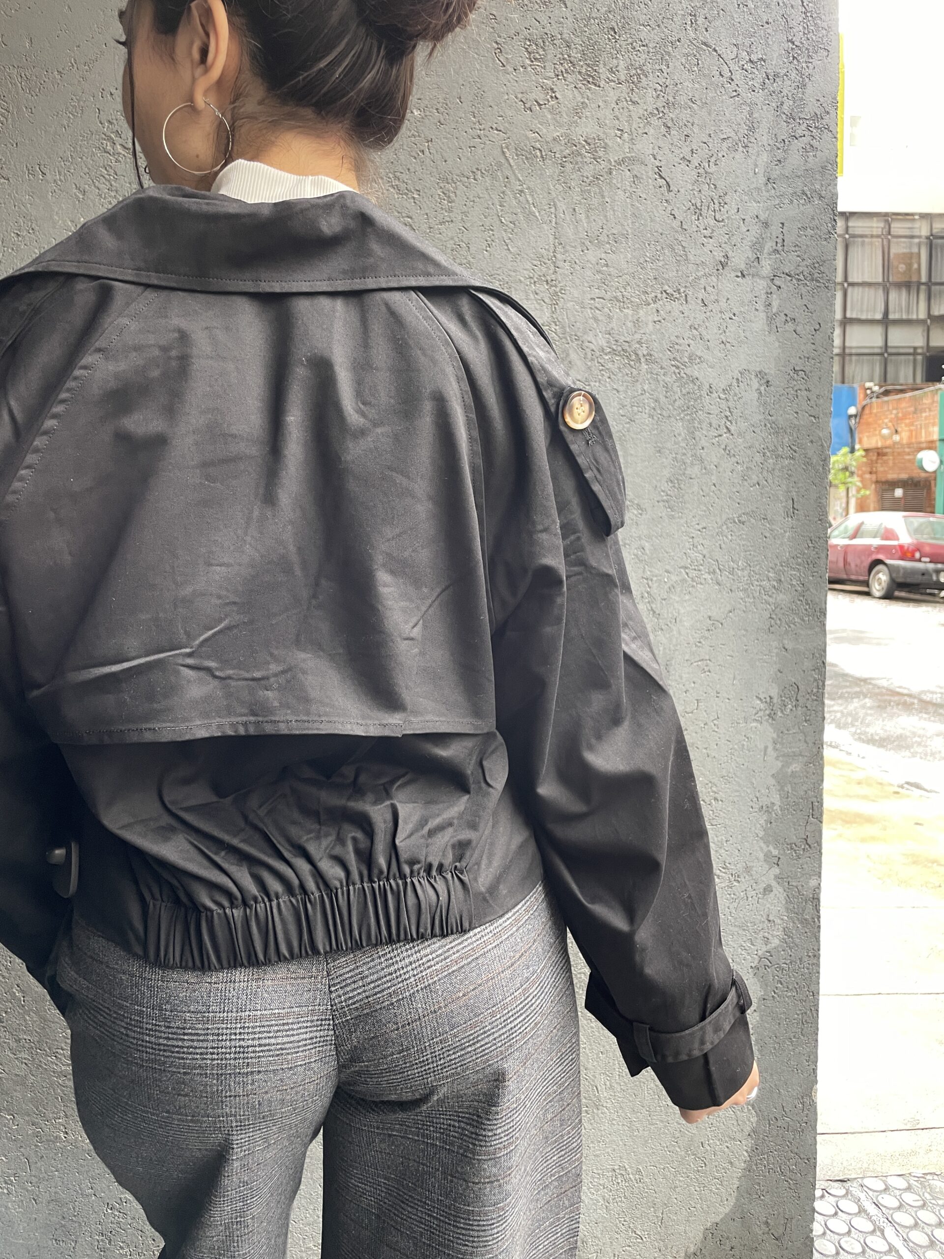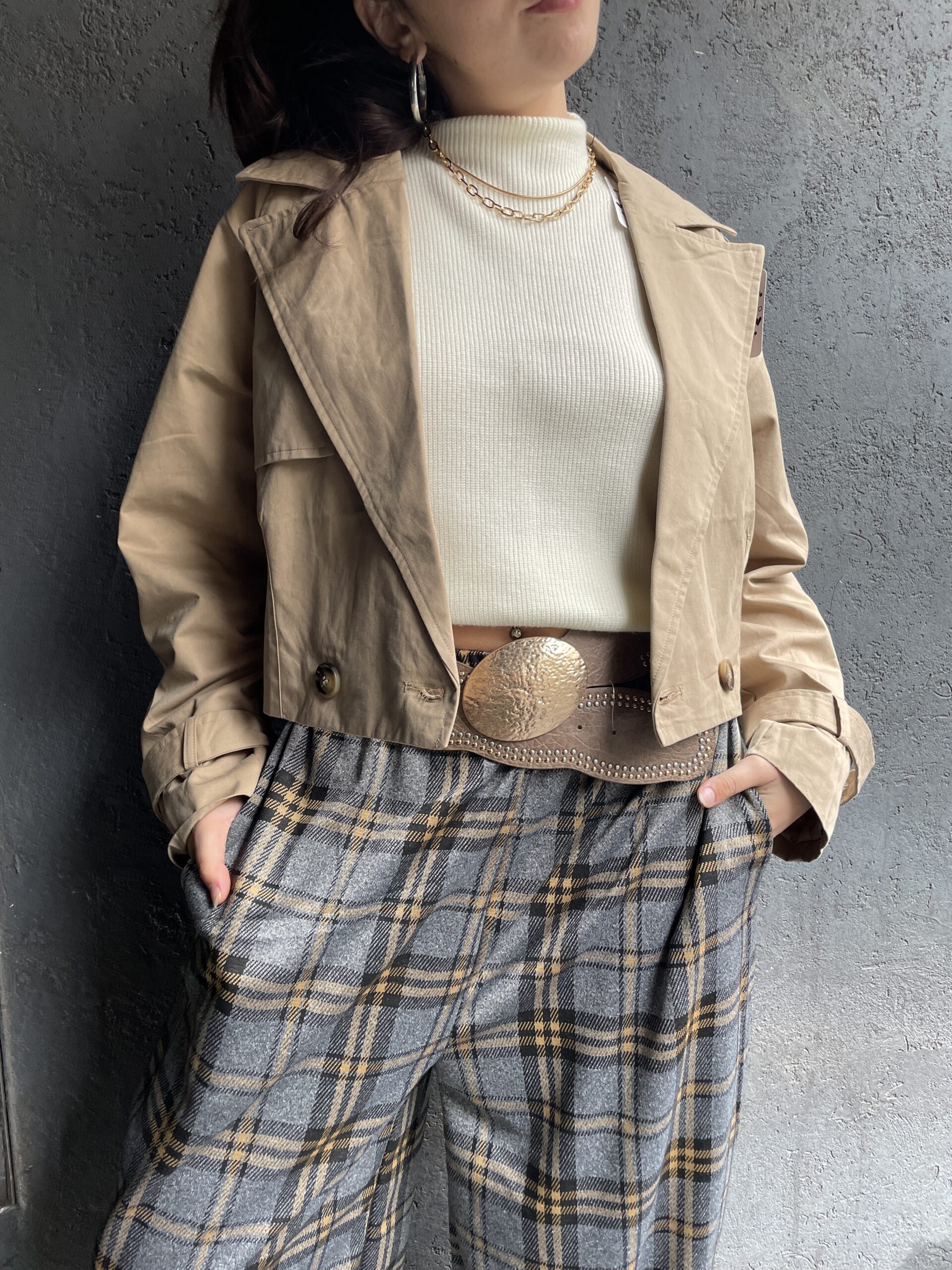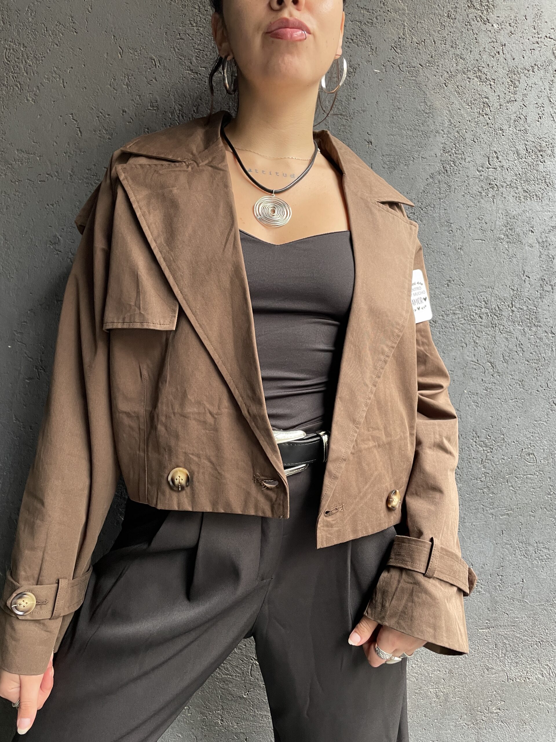 Trench con botones, pasacinto y bolsillos.
