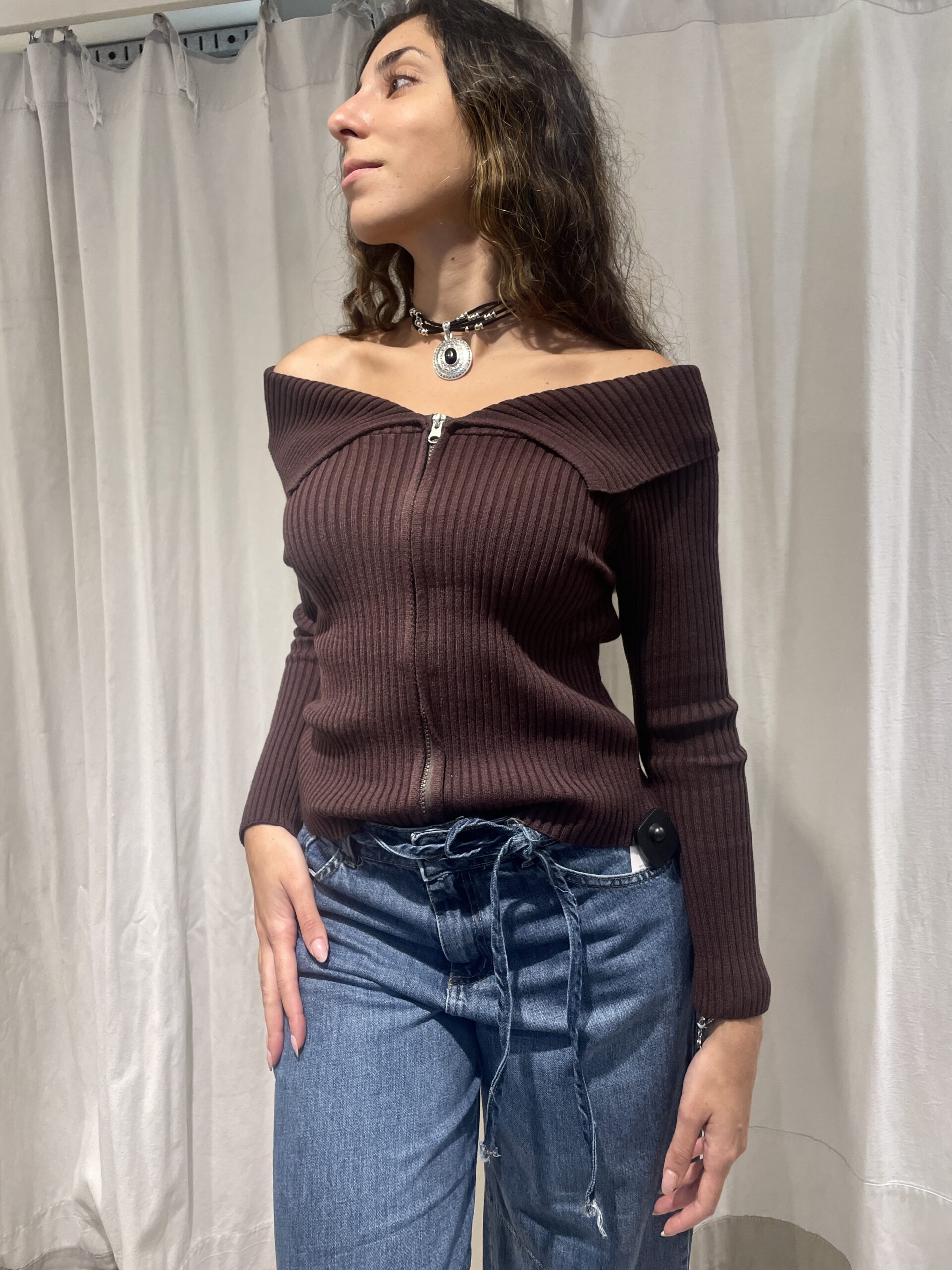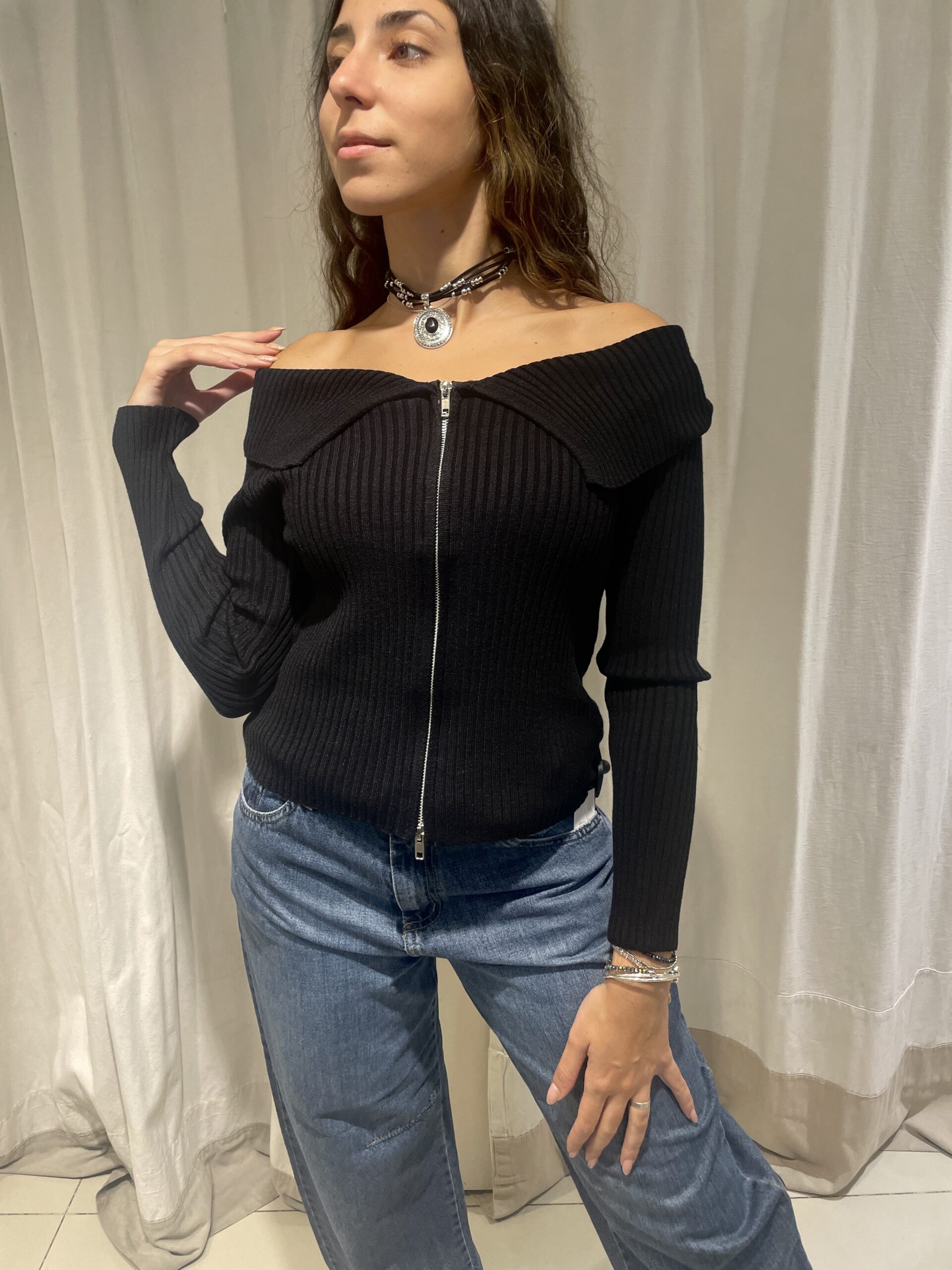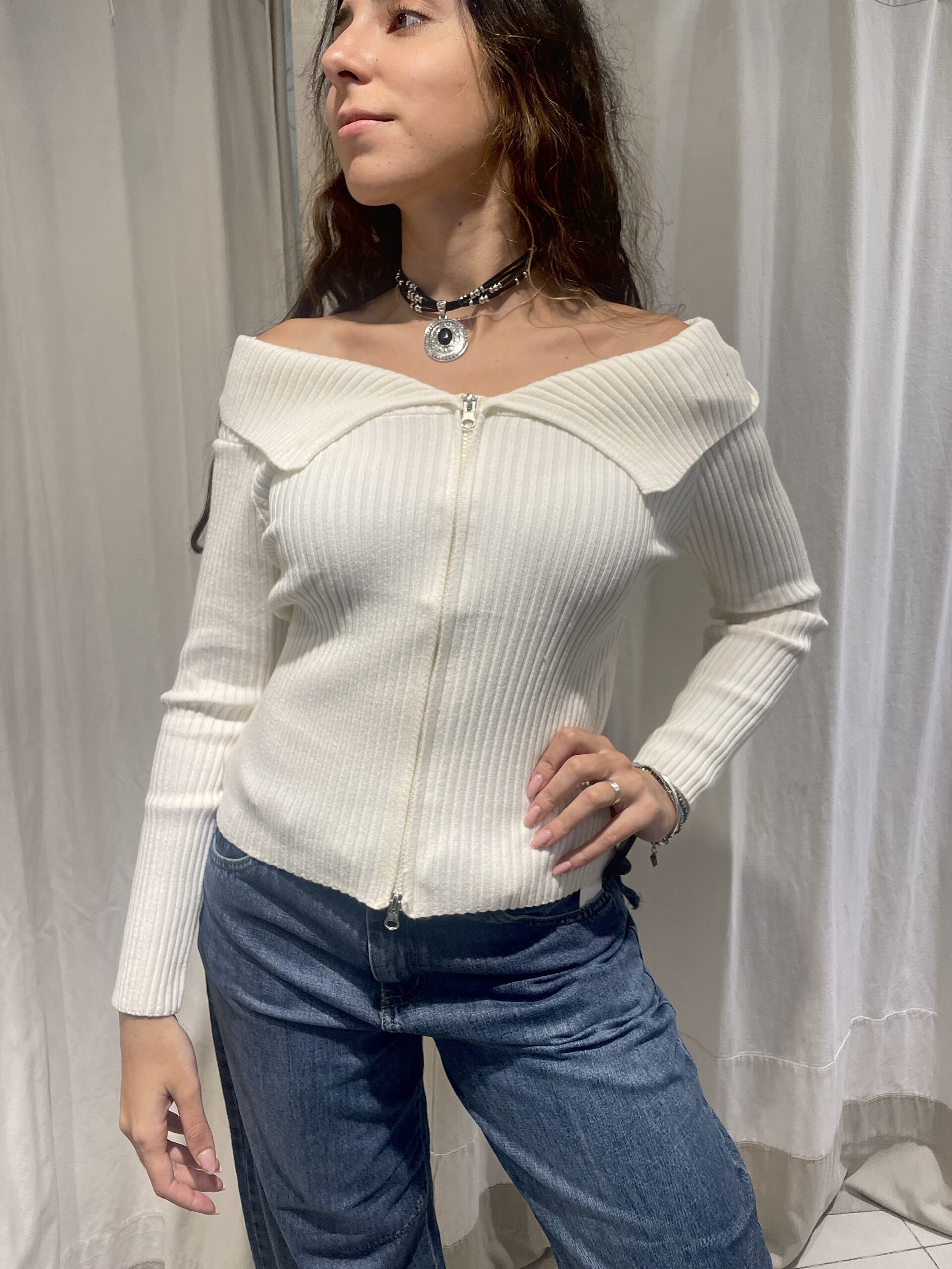 Campera lana con cuello de cierre moldeable.