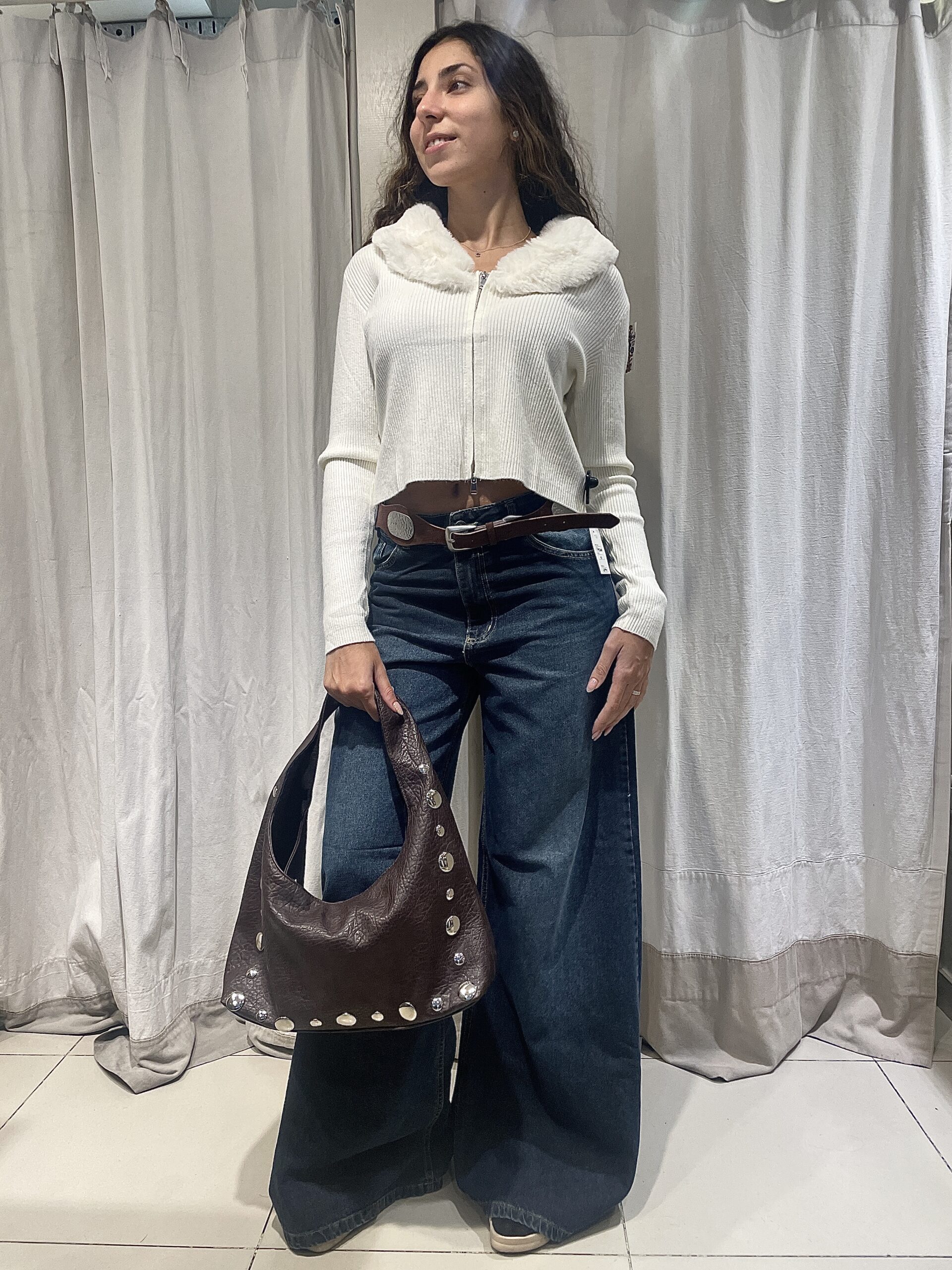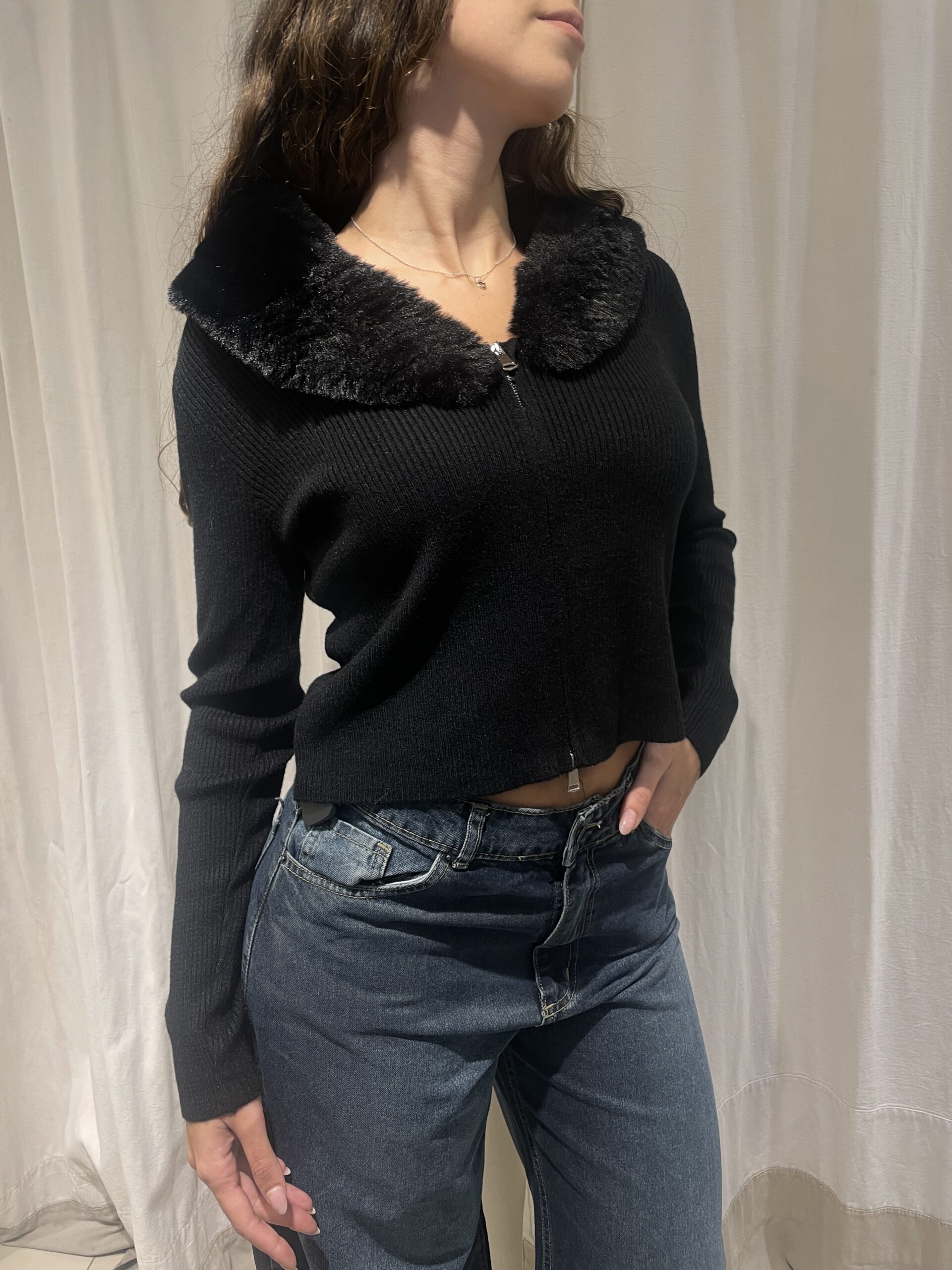 Campera crop de lana con cierre.