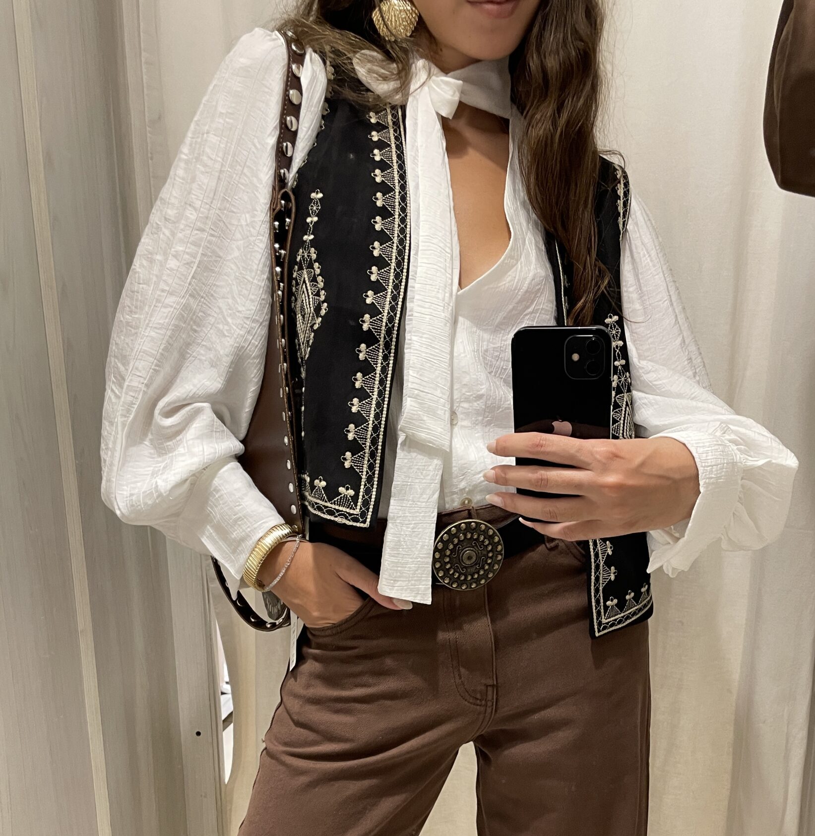 Chaleco gamuza forrado bordado