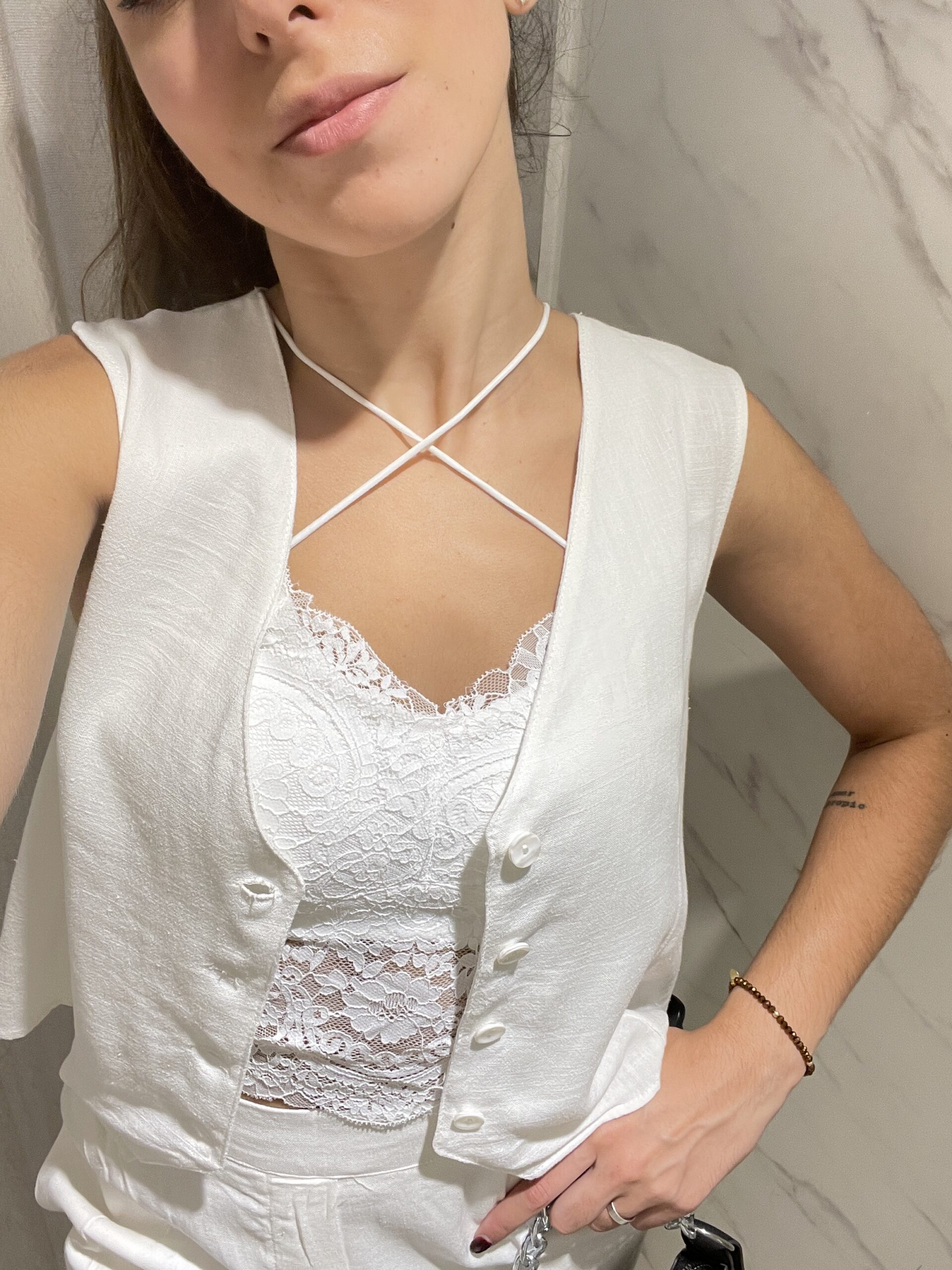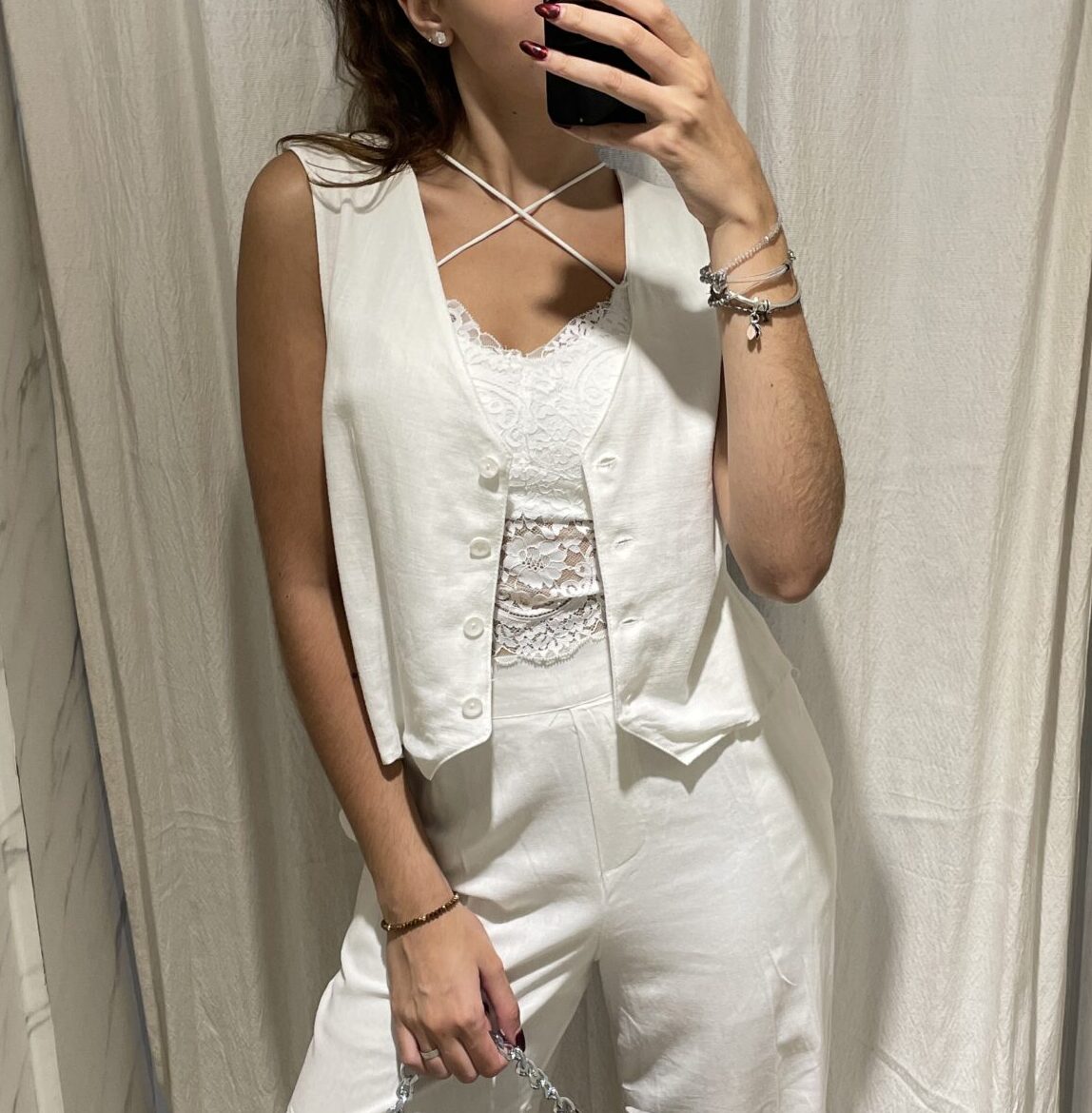 Chaleco amplio de lino. Talle único, equivalente a un M/L.