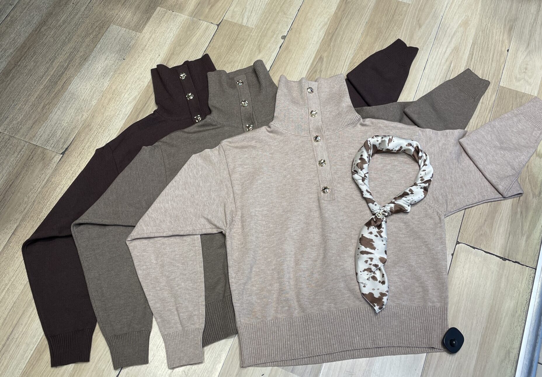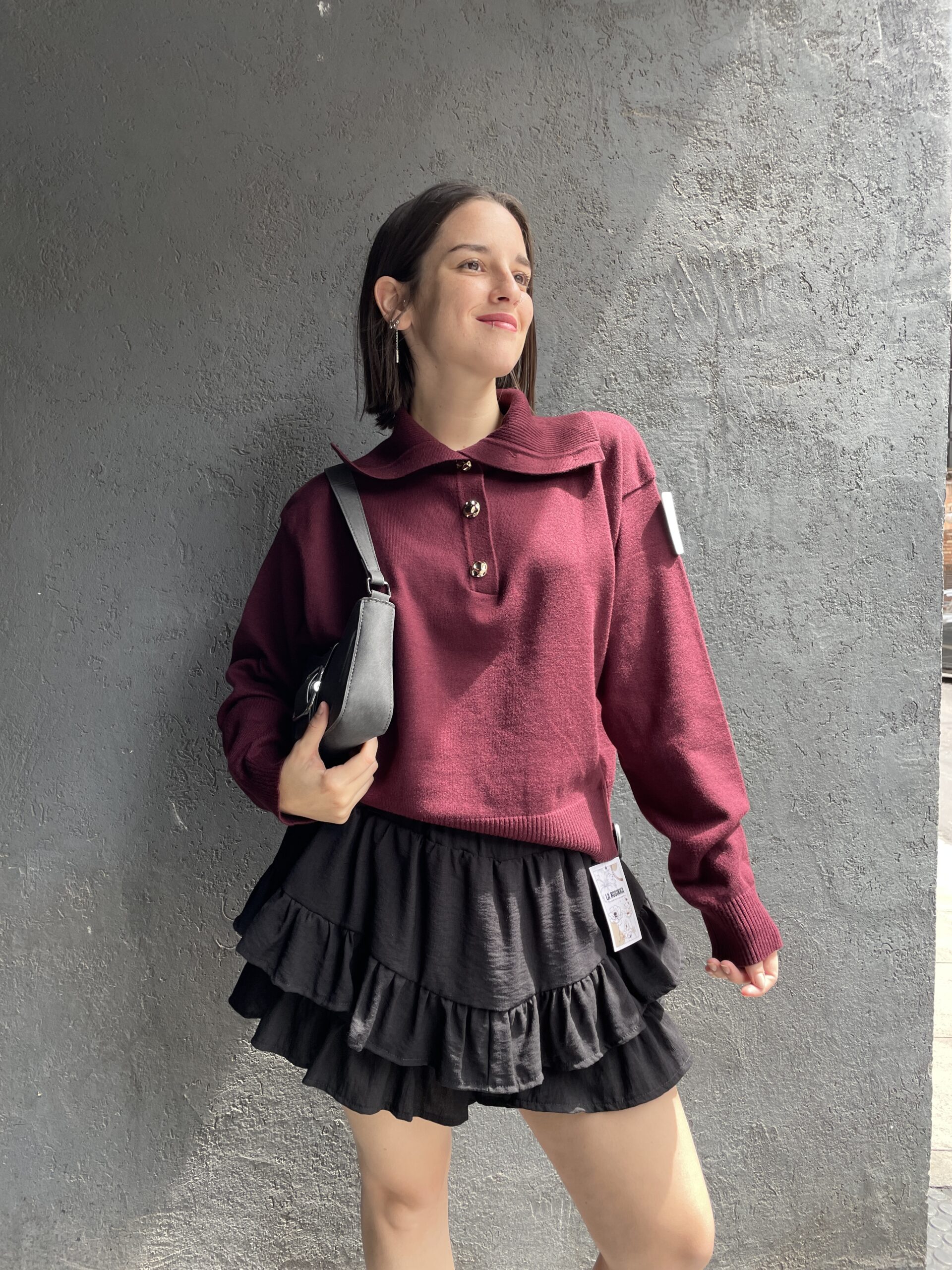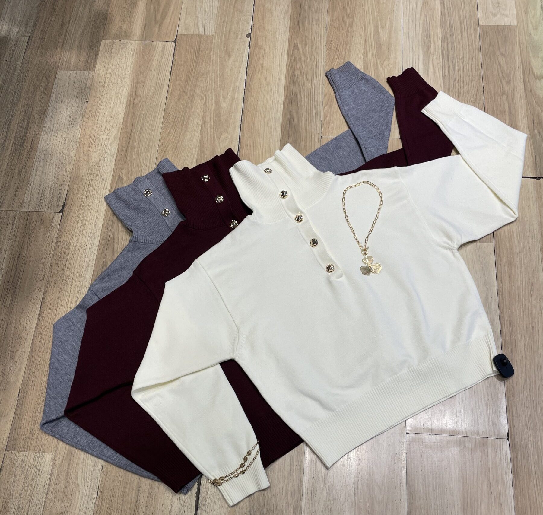 Sweater con botones dorados, dos formas de uso.