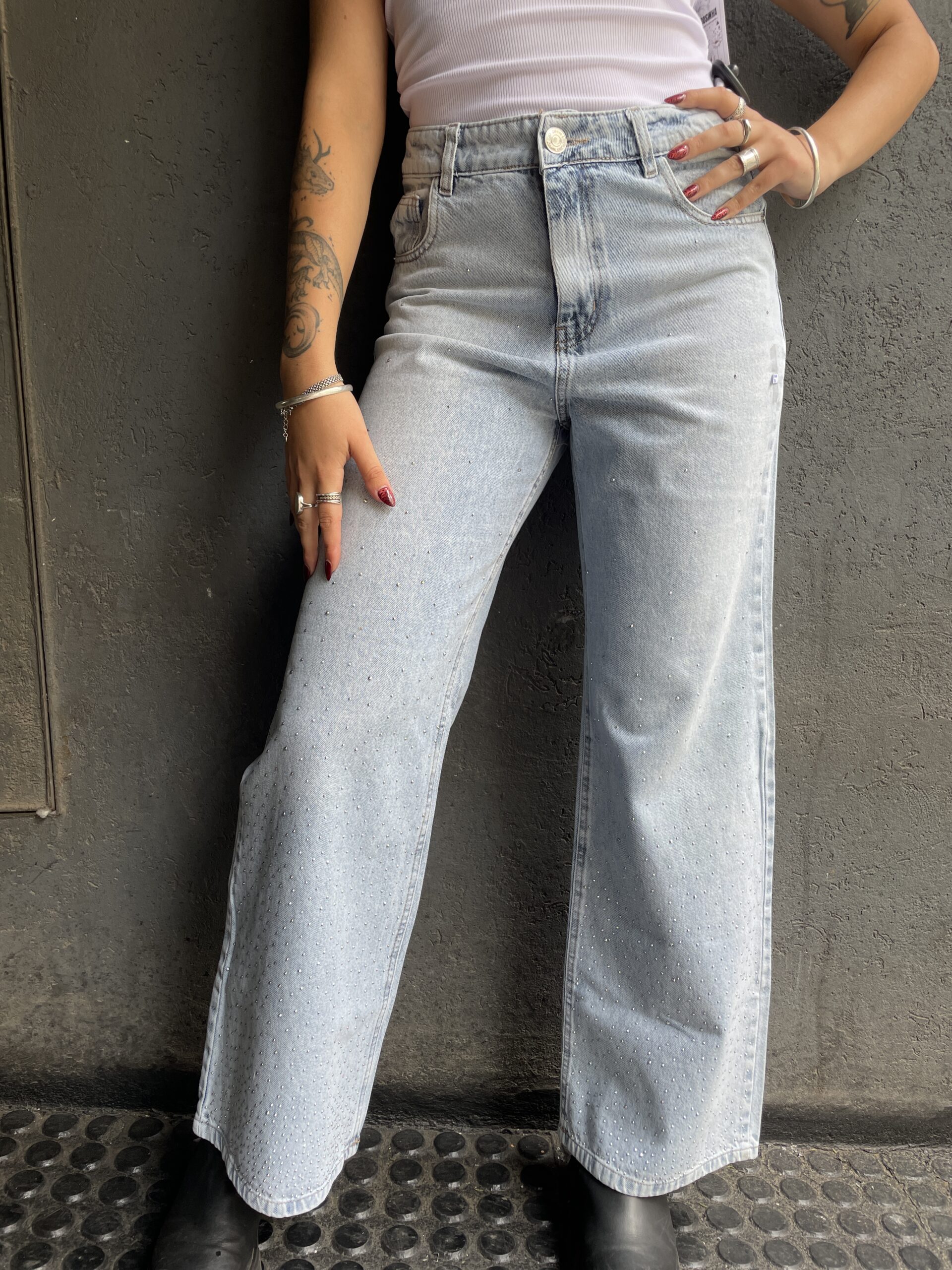 Pantalon con lluvia de strass, concentrados en la parte inferior.