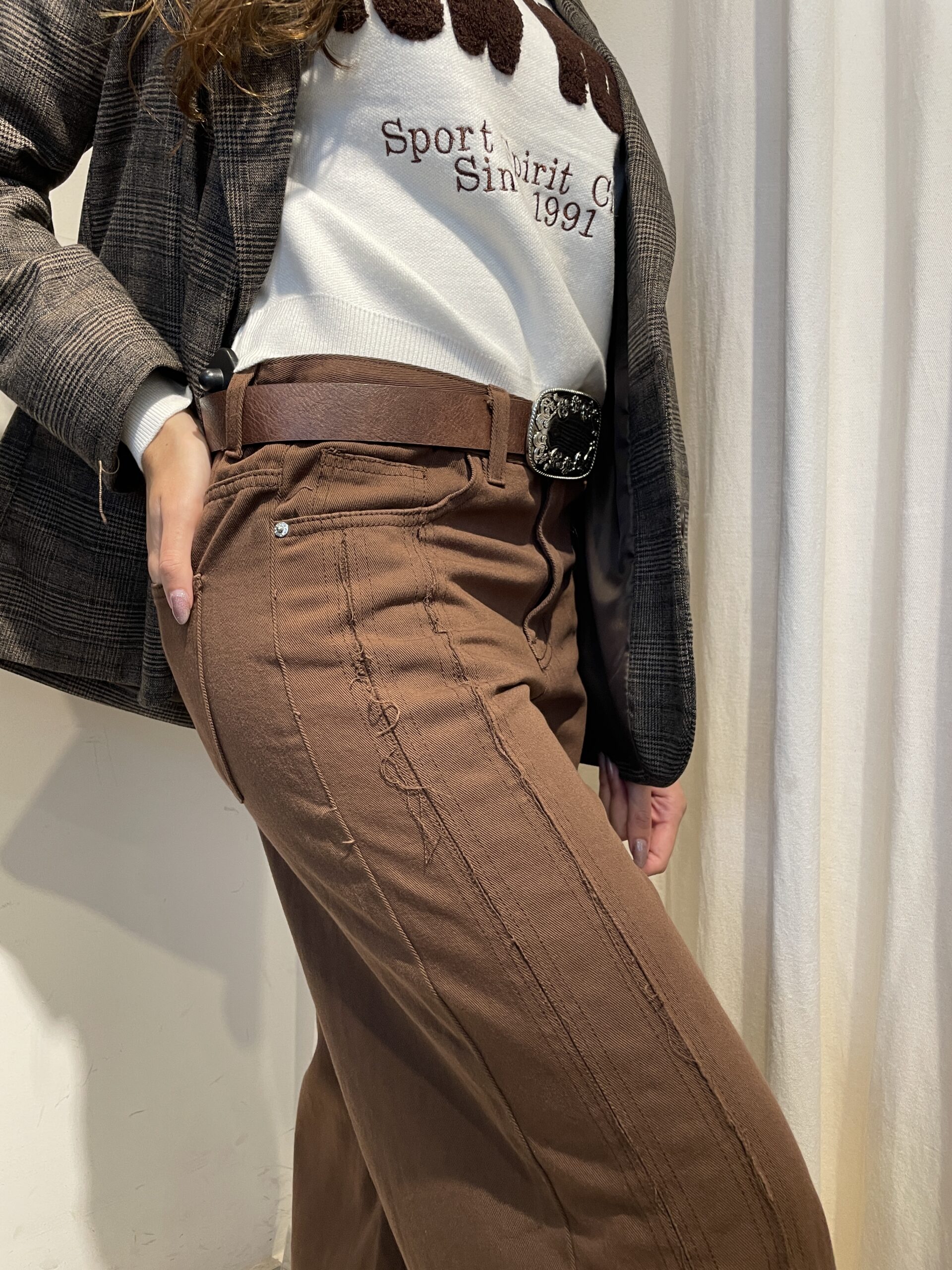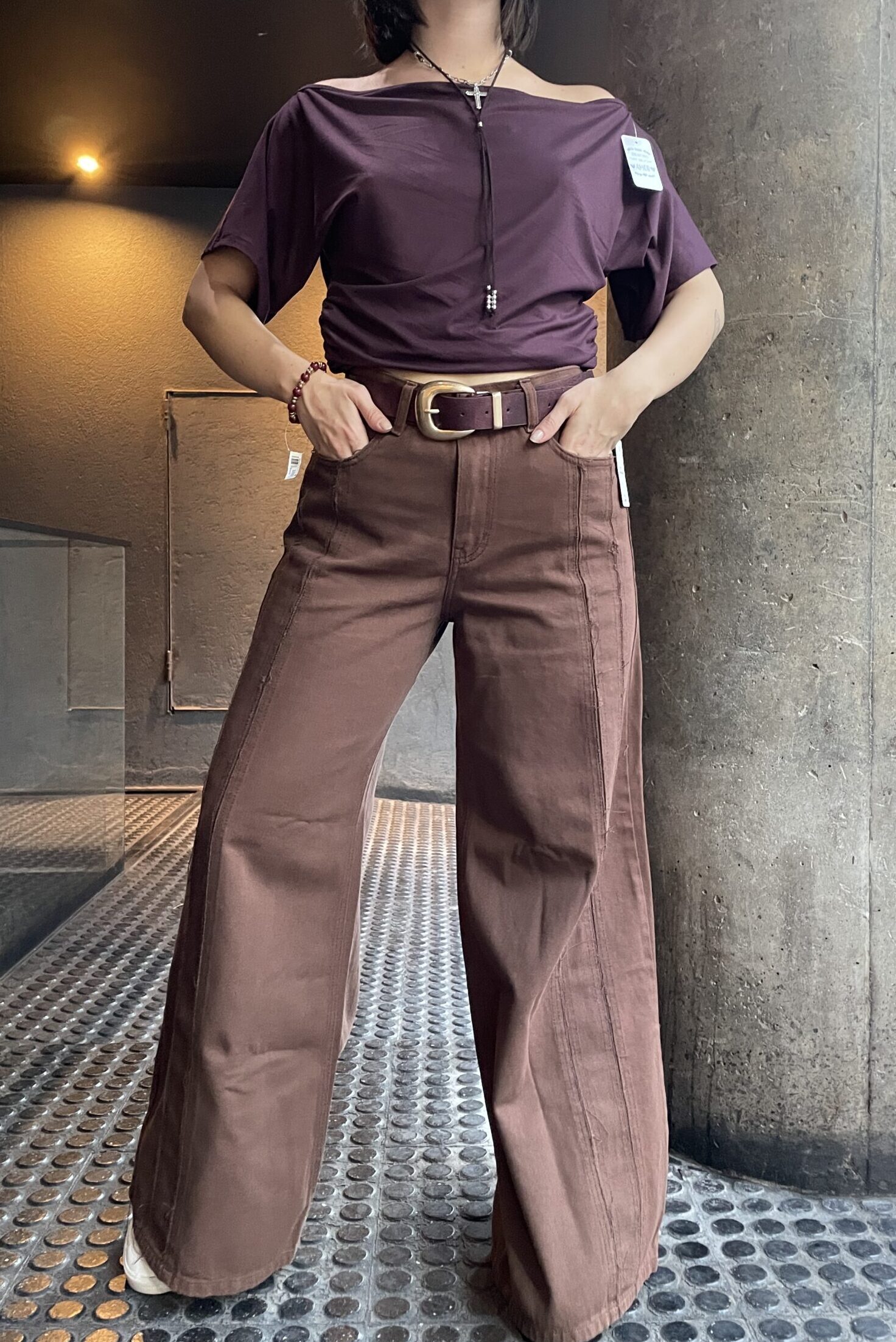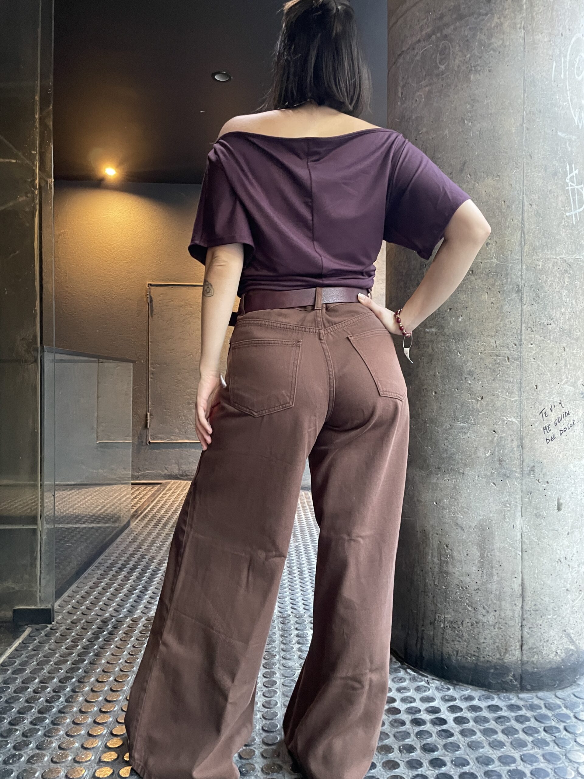 Pantalon de gabardina con detalles en piernas, color chocolate.