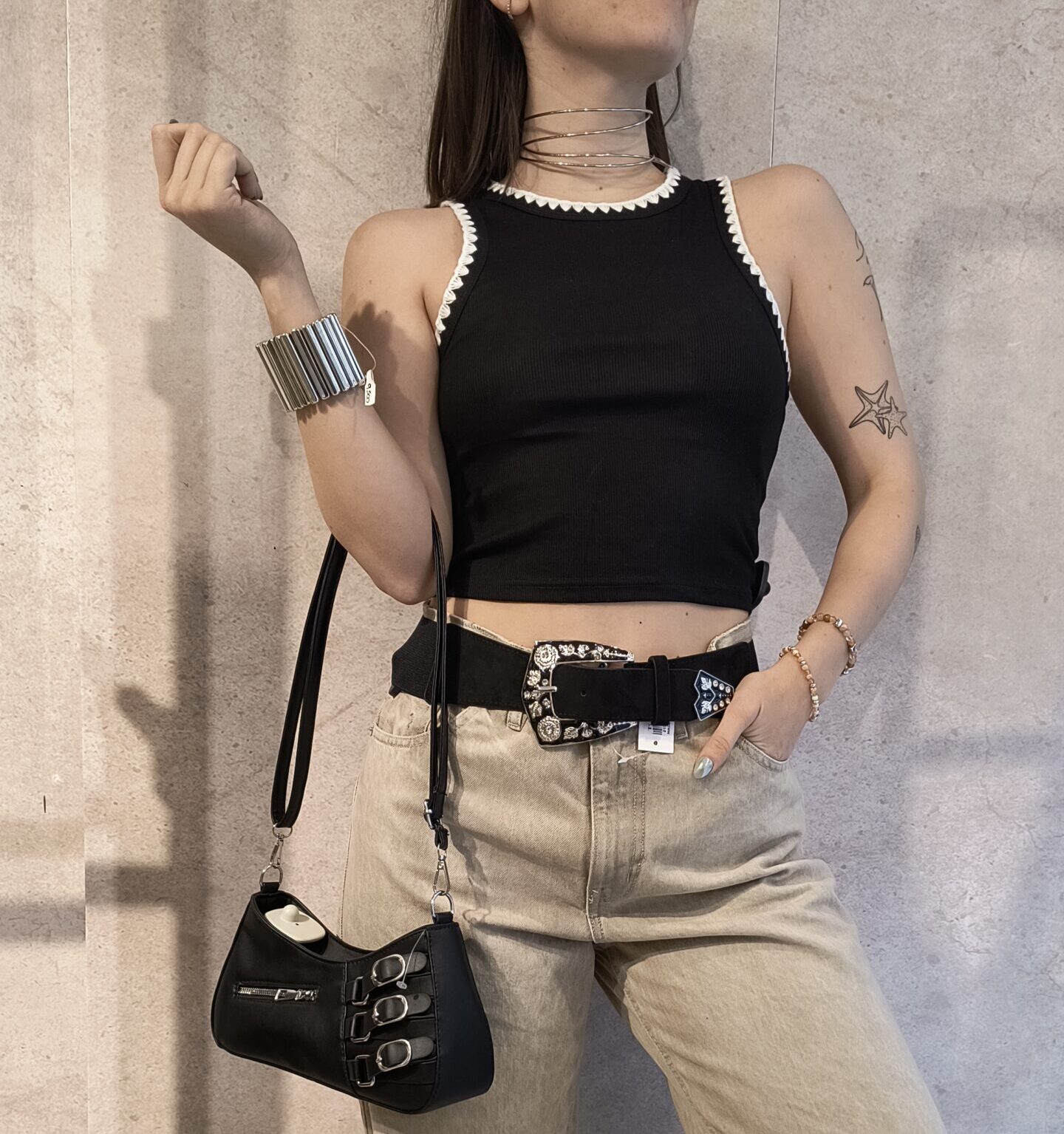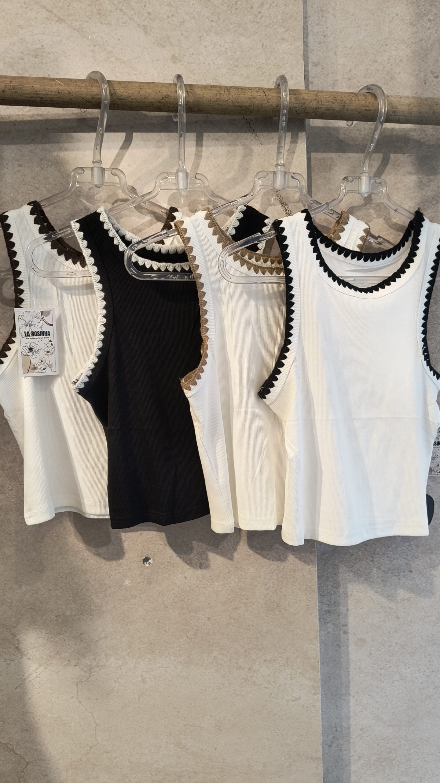 Musculosa de morley con los bordes bordados, combinación de colores