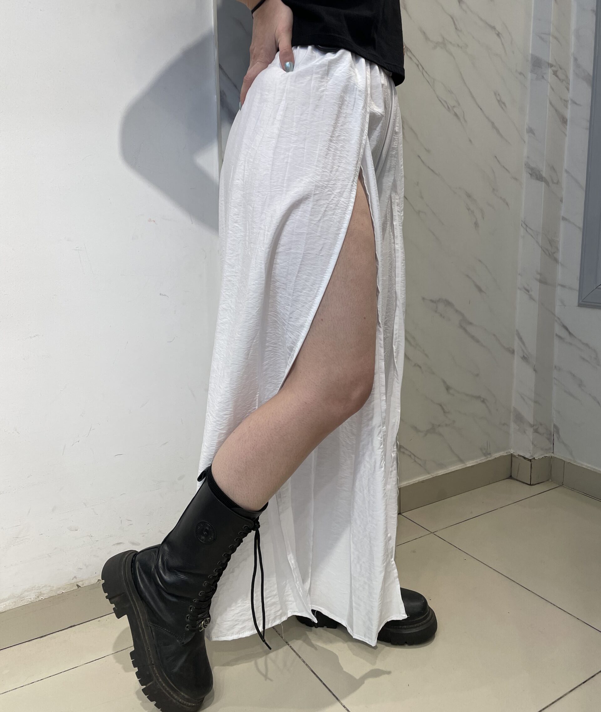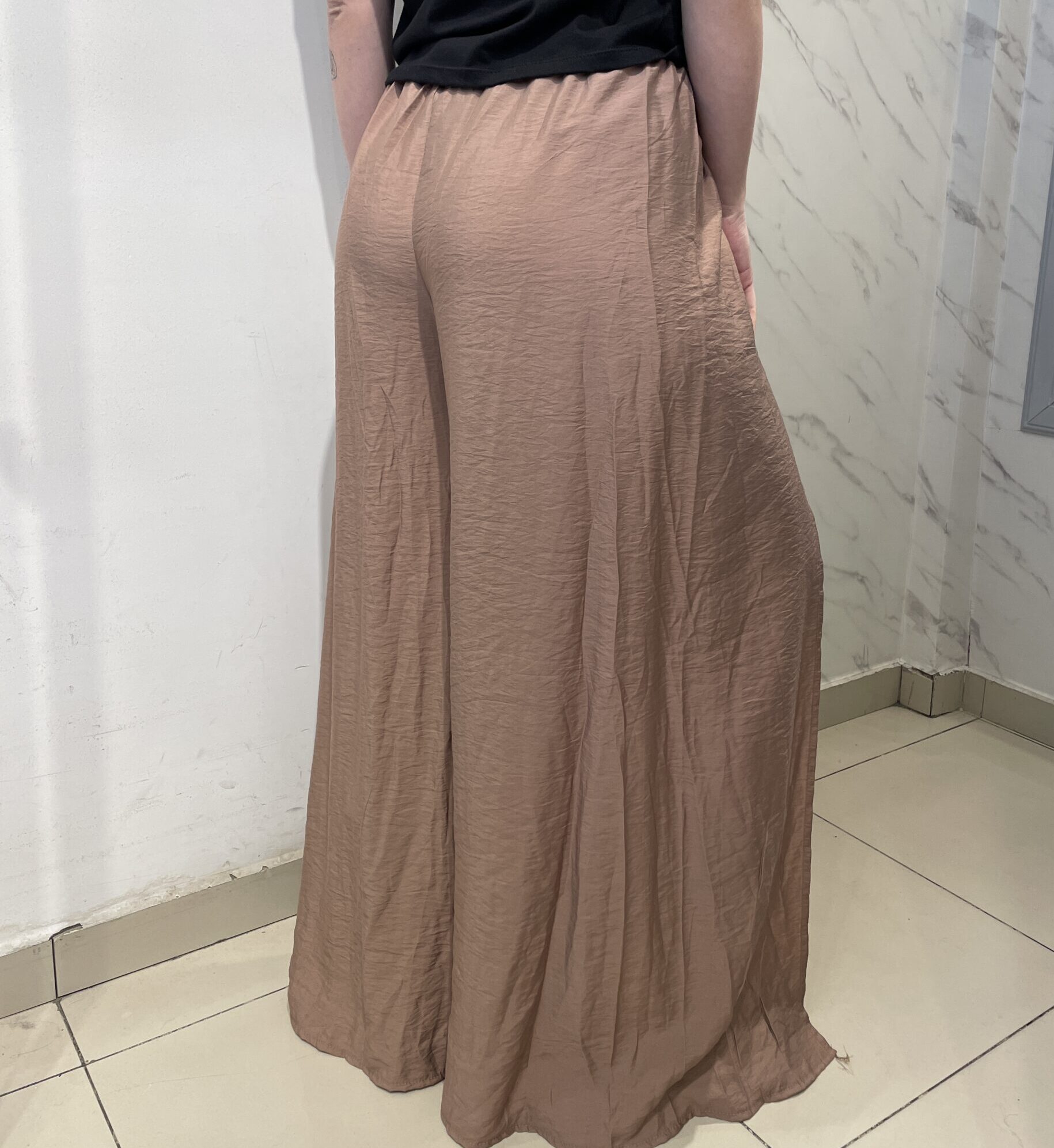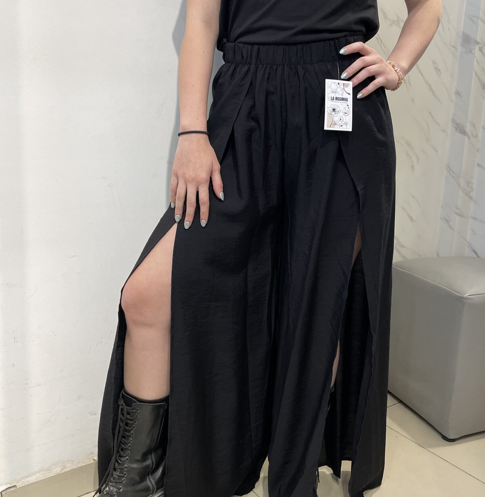 Pantalón de fibrana con aperturas en las piernas, efecto pollera.