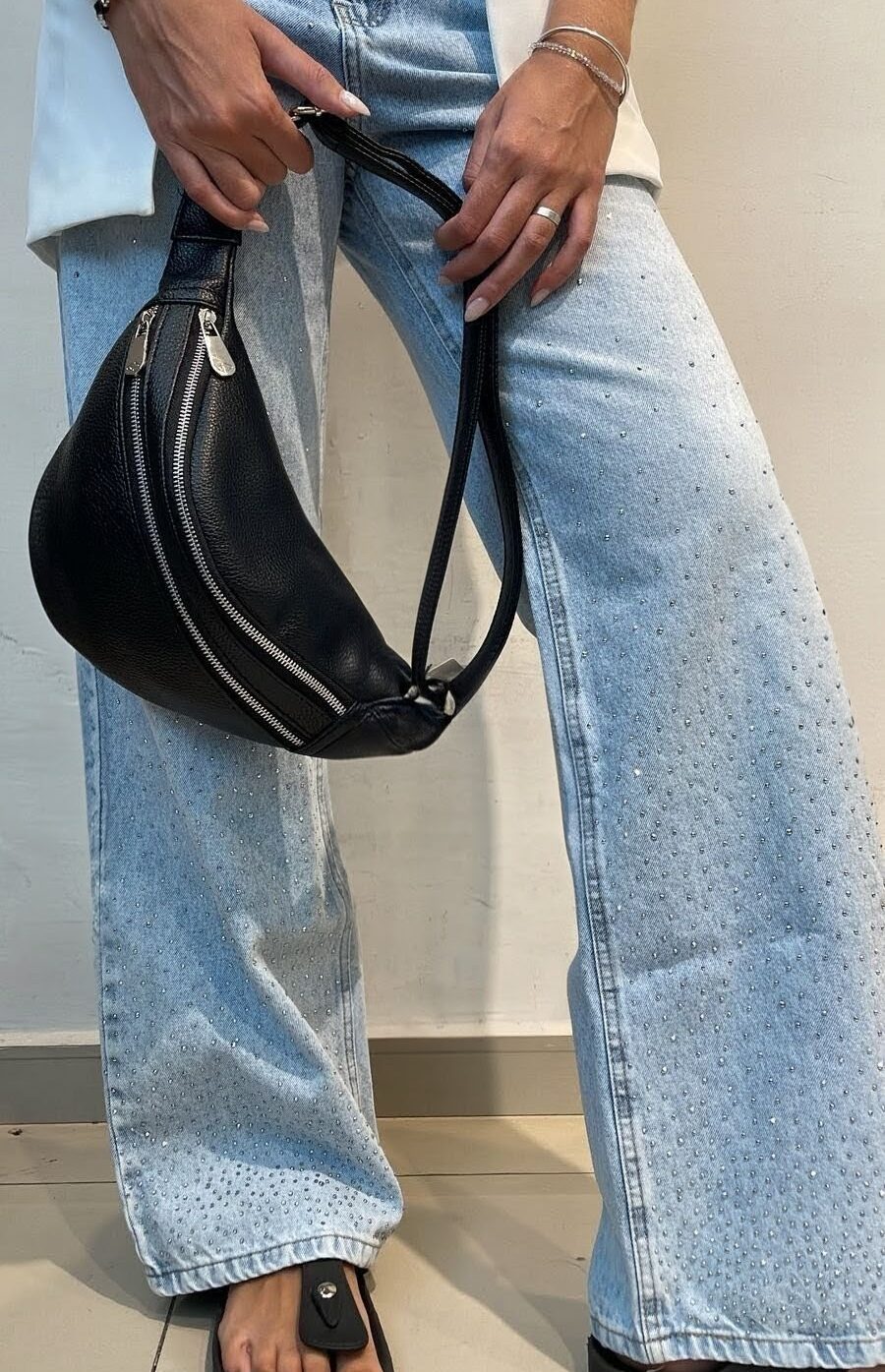 Riñonera con dos cierres metalizados.