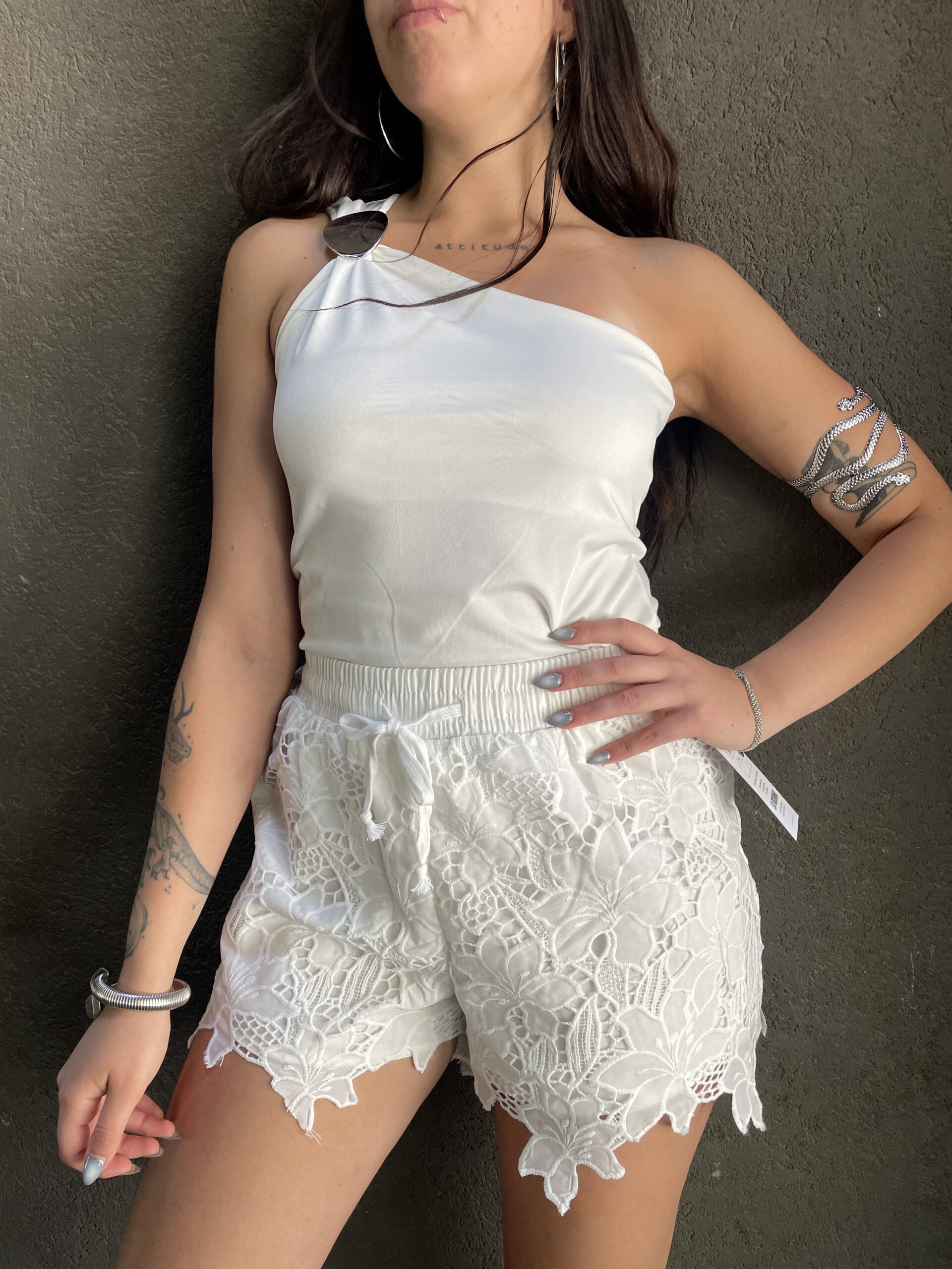 Short con cintura elastizada y lazo para regular. Talle único, equivale a un S/M.