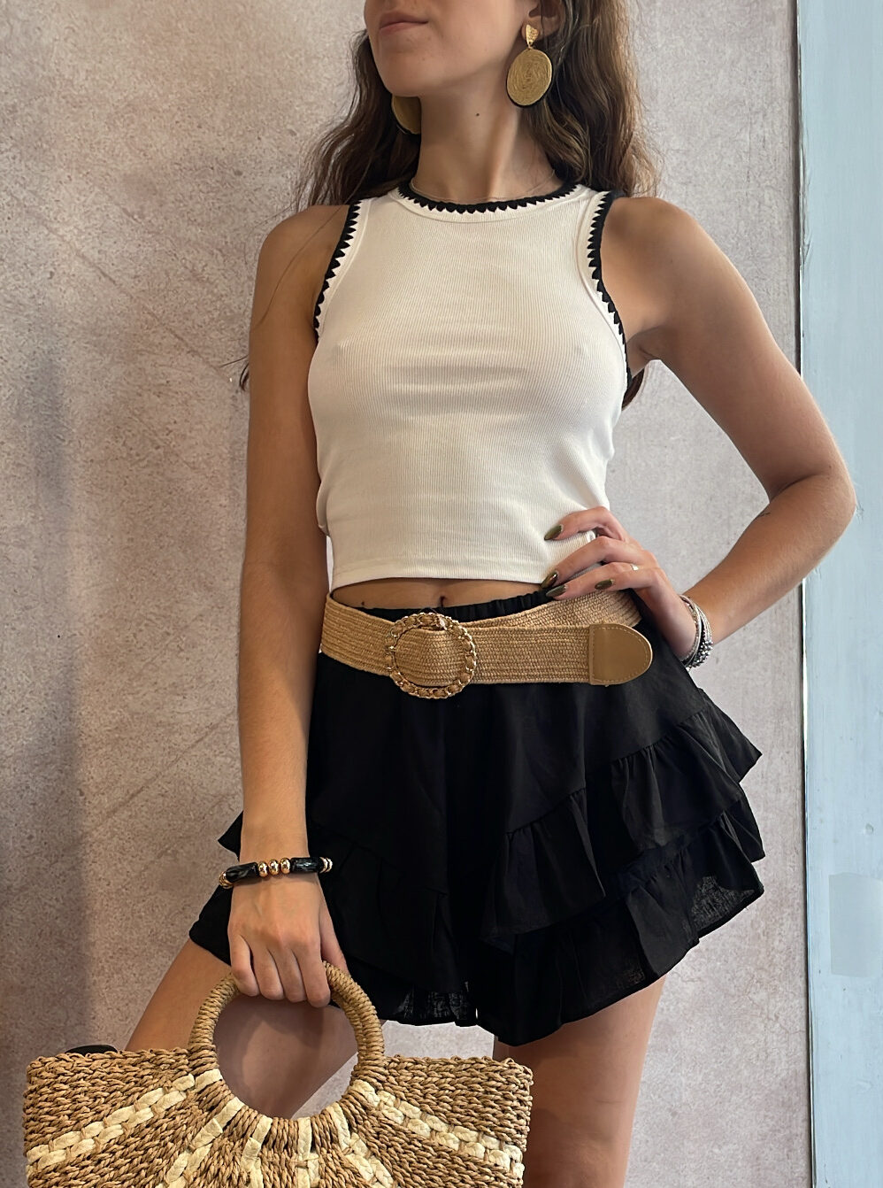 Short/pollera de lino con vuelos. Talle único equivalente a un M