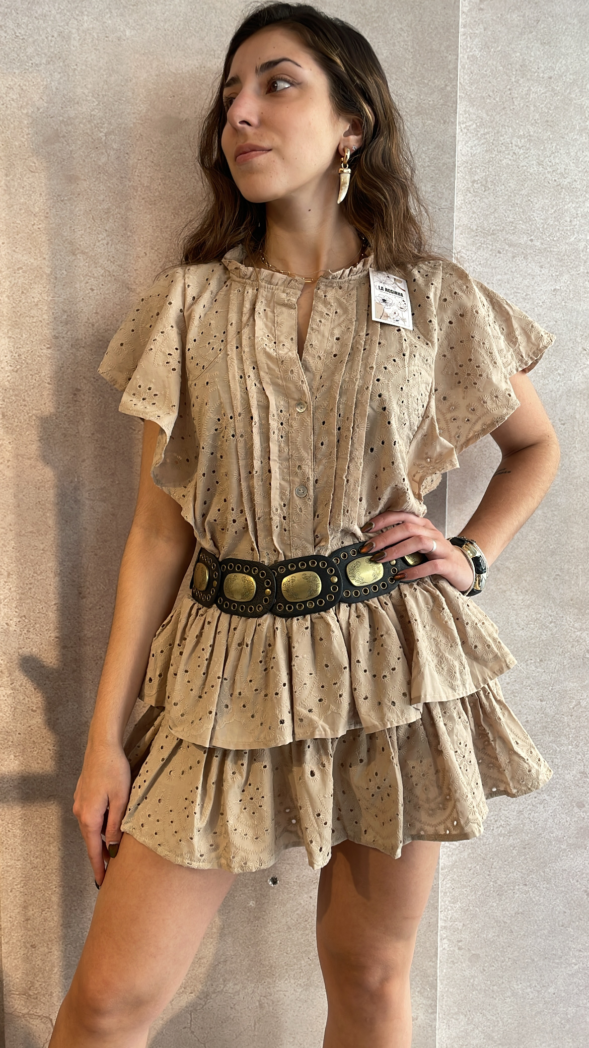 Short/pollera de broderie con vuelos. Talle único equivalente a un M