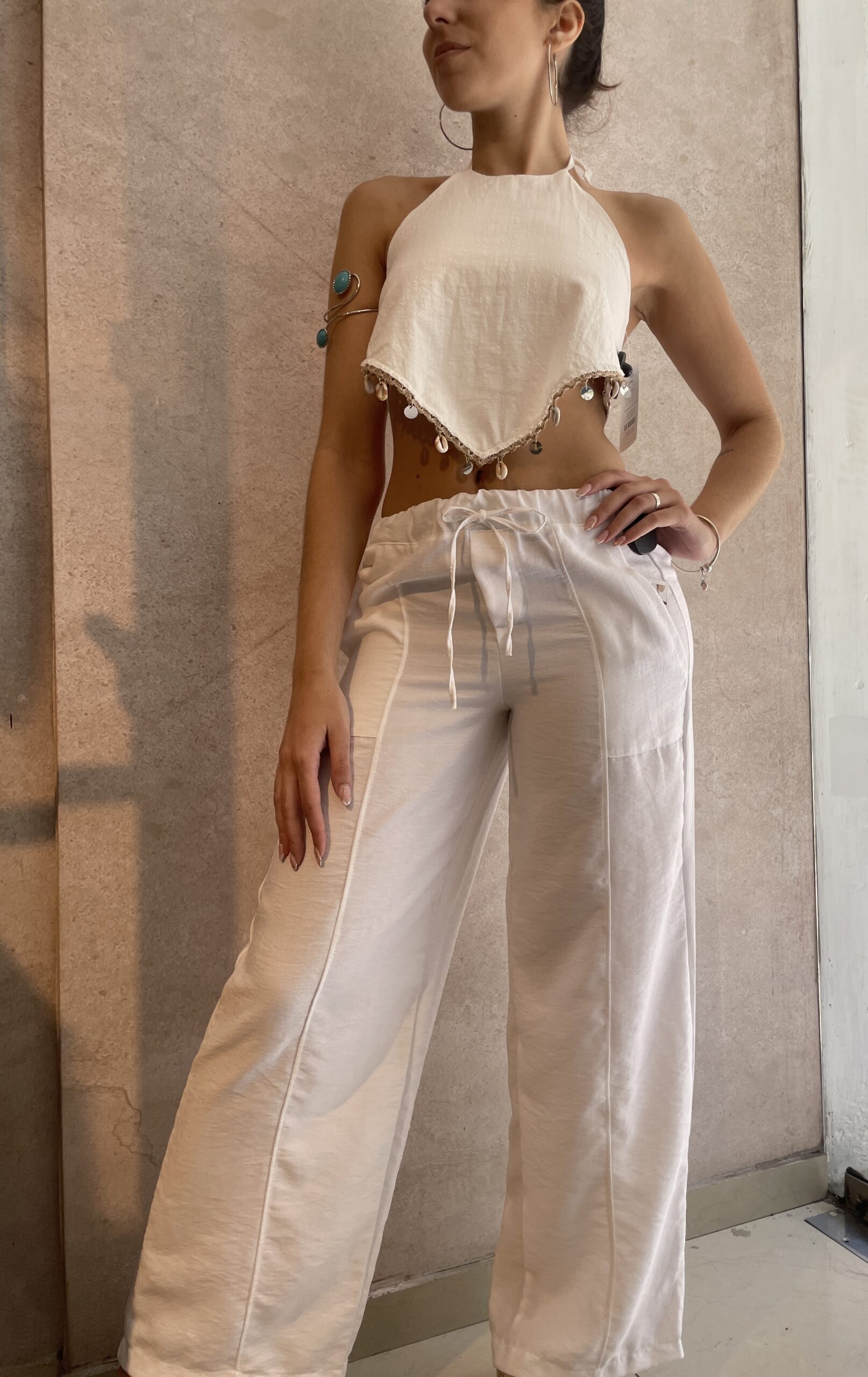 Top de lino con espalda regulable. Talle único.
