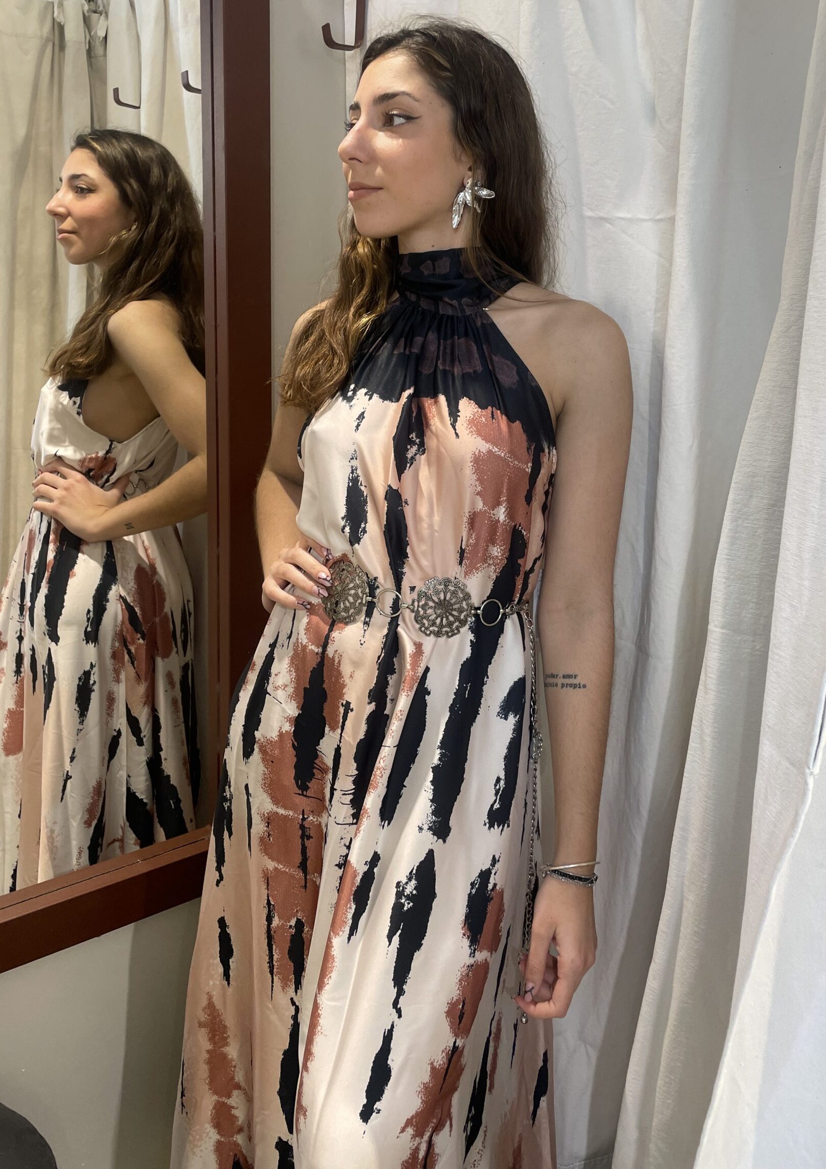 Vestido de seda largo corte halter. Talle unico, equivalente a un S/M.